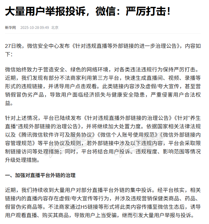 微信视频号是重灾区,一大堆反智,反科学、假医生,摆拍的视频,堂而皇之的出现在各种老年人的手机里,家族群真的天天都有人转发,朋友圈转发,我都让我爸妈别去看这种东西,别人要发就发,不用管他。直播间全是卖保 ...