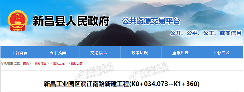 招标公告新昌工业园区滨江南路新建工程(K0+034.073--K1+360) 招标公告1.招标条件新昌工业园区滨江南路新建工程 已由 新昌县发展和改革局 以 新发改工业〔2018〕26号批准建设,建设资金来自 自筹 ,出资比例为 ...