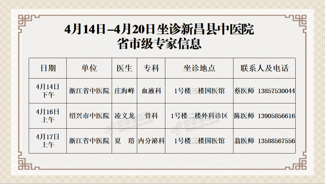 温 馨 提 示 新昌县中医院 连贯医疗服务中心预约电话 0575-86502366 门诊时间: 上午08:00——11:30 下午13:30——17:00 急诊内、外、儿科及发热门诊24小时开放。 杨春波妇产科科&n ...