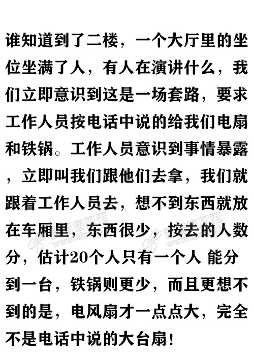| 这种活动就是卖房的或者店铺的,电话通知你参加,要夫妻二人到场的,等全部活动结束了会送你一个小礼物的,十多年前搬新家买了很多家电,没多少时间就接到电话参加了一次,陆陆续续接过几次电话也没去,都是老套路了,但是还有很多人参加的。 |