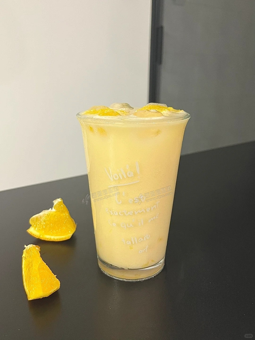 很简单的做法,橙子+牛奶+糖,一起榨汁就好了