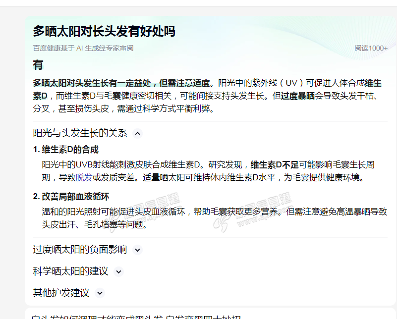 最近掉发严重,医生叫我多室外运动,多晒太阳。原来是这个原因