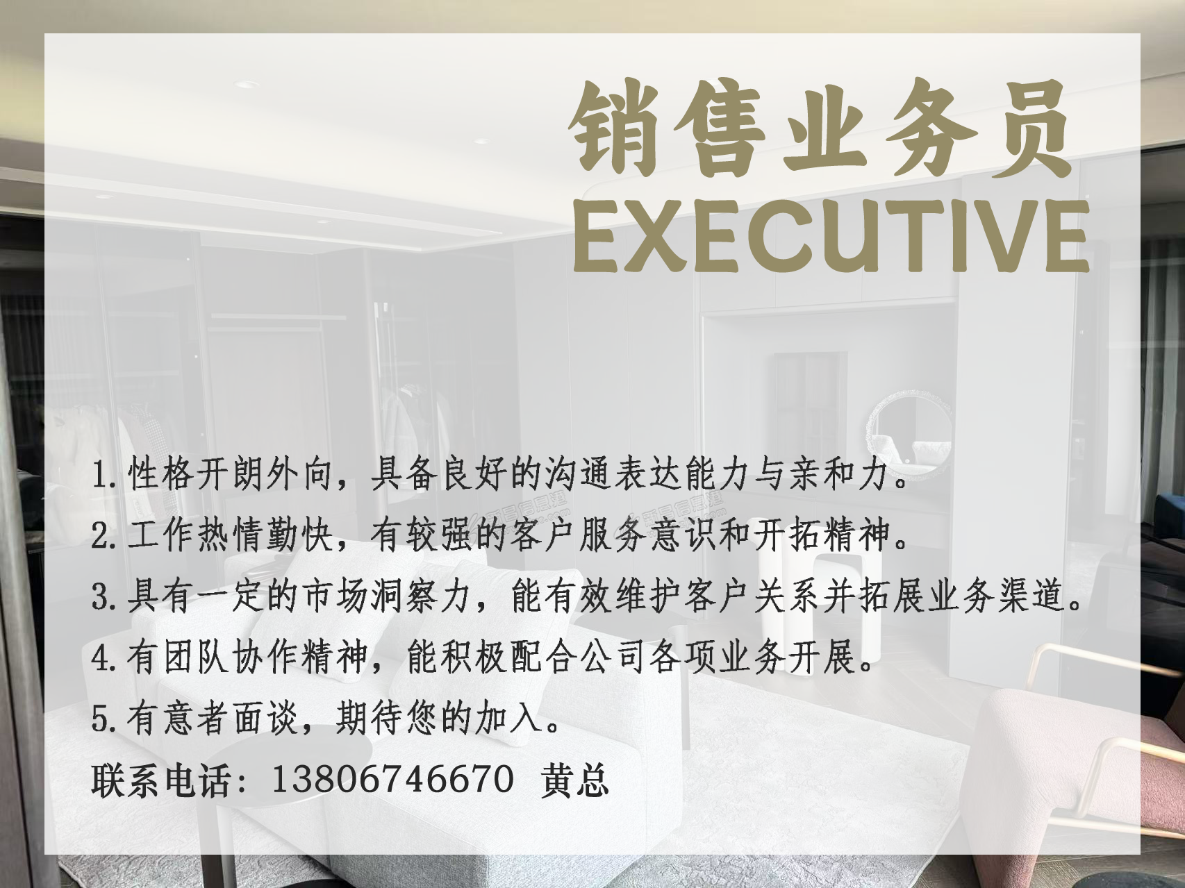 招聘单位:嵊州市富裕木业有限公司招聘岗位名称:销售业务员招聘人数:2性别要求:女学历要求:不限工作经验要求:不限工作区域:其他区域联系人:黄经理单位地址:新昌县大明市联系电话:13806746670 富裕木业招聘业务员2名 ...