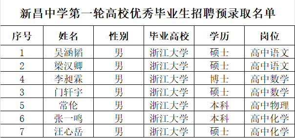 根据《浙江省新昌中学面向2026年应届高校优秀毕业生招聘教师公告(第一轮招聘)》文件精神,县纪检监察组、县人社局、县教体局、新昌中学已于11月15日至16日赴浙江大学组织新教师招聘,现将有关招聘情况公布如下:经 ...