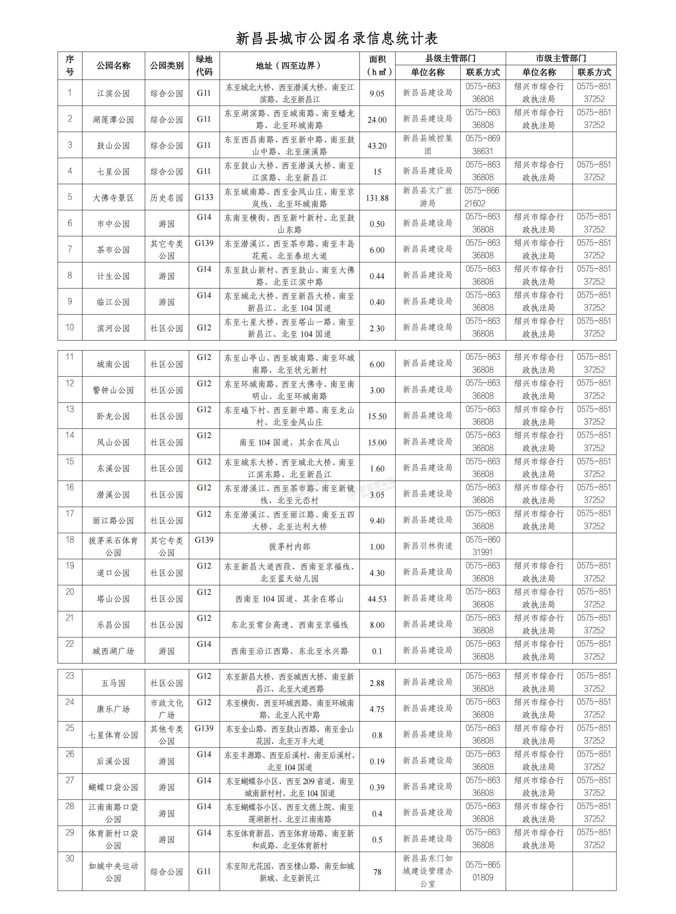 《新昌县城市公园名录信息统计表》征求意见稿 为进一步规范我县城市公园命名管理和名录公布工作,根据省建设厅《关于做好城市公园命名管理和名录公布工作的通知》(浙建城函〔2025〕196号)要求,建立城市公园名录 ...