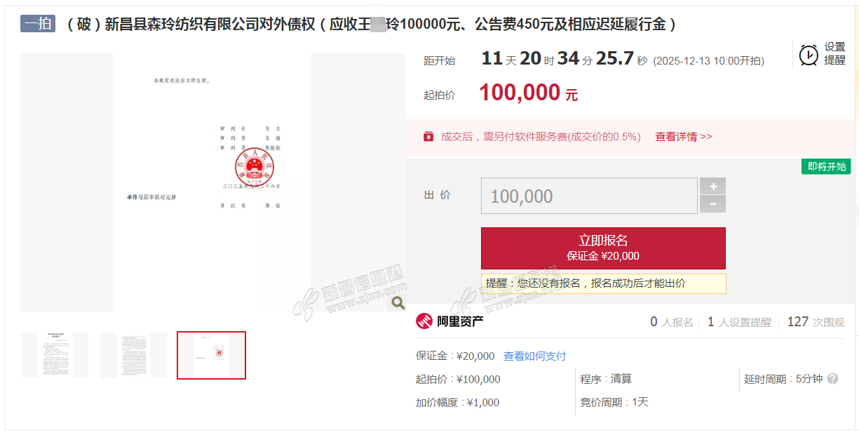| 没有听说过这个公司。这是拍卖他们公司的债权,意思是别人欠该公司十万元,现在讨不归,所以把这个债权拿出来拍卖一下。 |