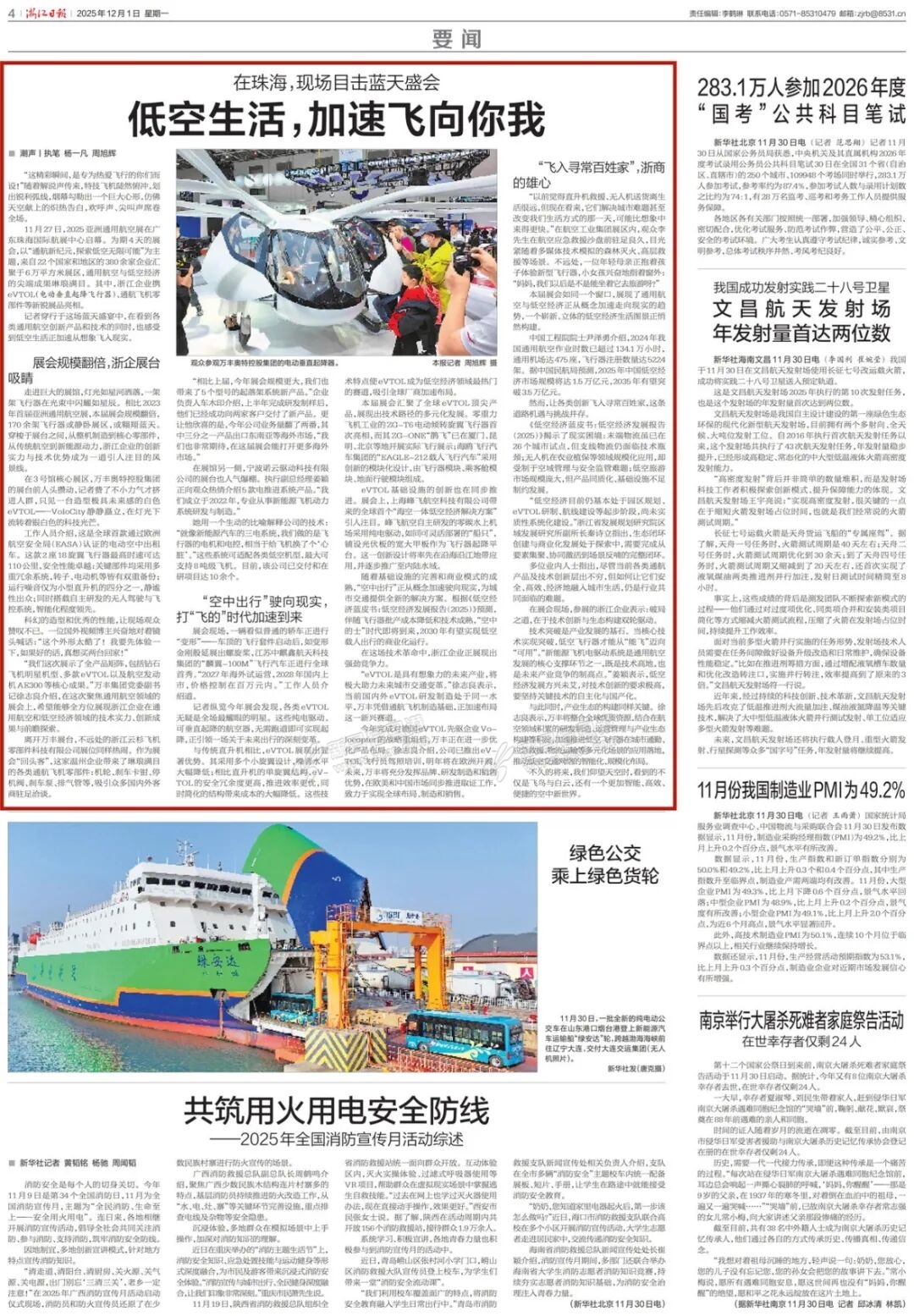 12月1日,《浙江日报》以我县万丰奥特电动空中出租车产品为例刊发《低空生活,加速飞向你我》,鲜活展现新昌在低空经济领域勇于探索、创新突破的发展实践。 “这精彩瞬间,是专为热爱飞行的你们而设!”随着 ...