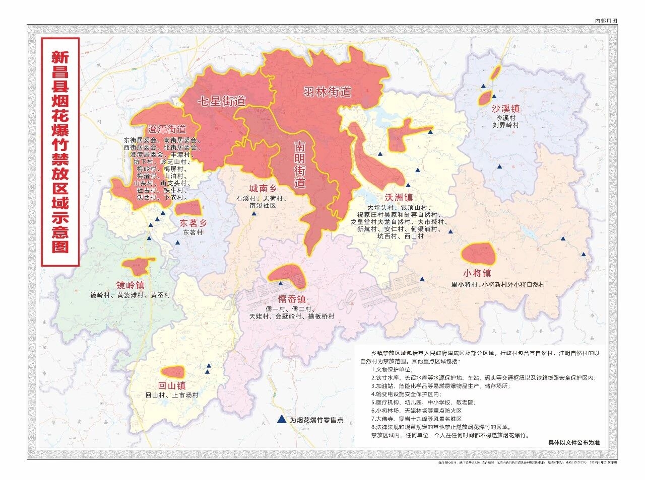 烟花爆竹禁放区域 岁末年初,又将迎来烟花爆竹销售燃放旺季,为保障人民群众生命财产安全,维护社会公共秩序,不断提升空气质量,根据《新昌县人民政府关于调整禁止燃放烟花爆竹》(新政发〔2025〕1号),现就我县 ...