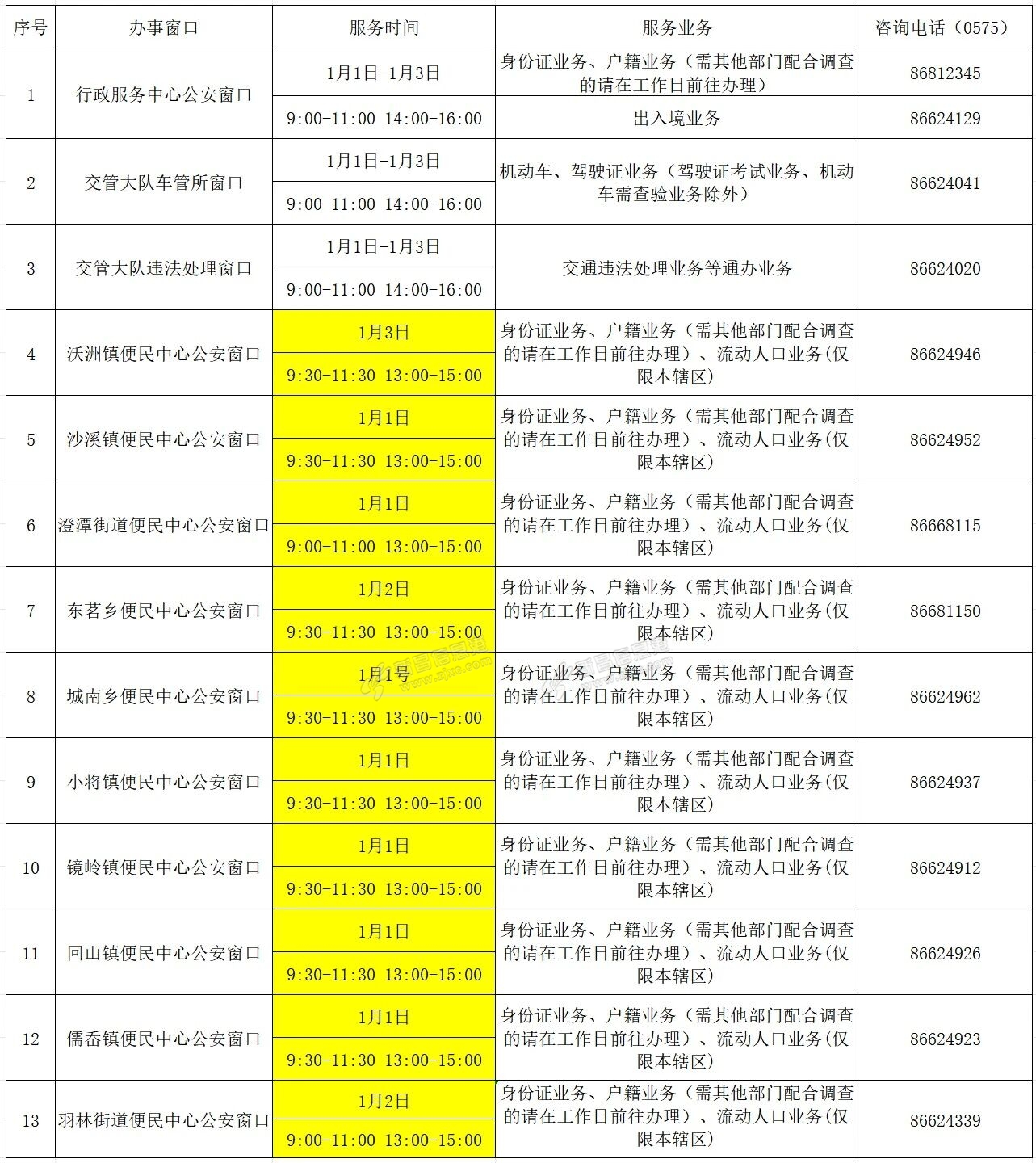 新昌公安办事窗口元旦服务时间 来源:新昌公安