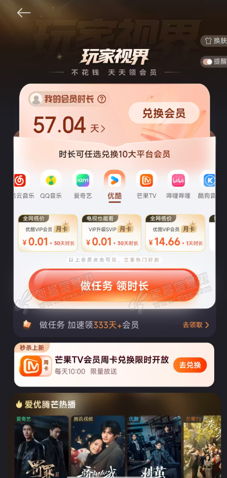 《小米钱包》,可以白嫖视频网站的会员,每天看几个广告就可以领取会员时长,我已经实现会员自由了,缺点就是一个月最多换一个会员,除非有两个小米账号