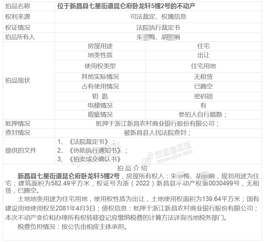 | 有钱人的房子也是要拍卖的 |