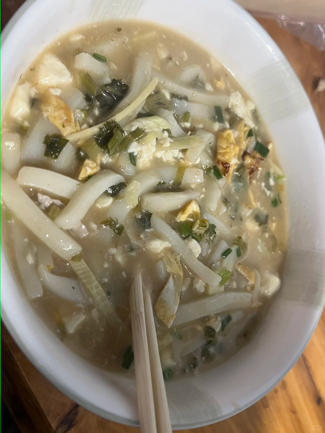 这碗年糕可惜少一样主配,如加几片咸肉和大蒜叶会更香! |