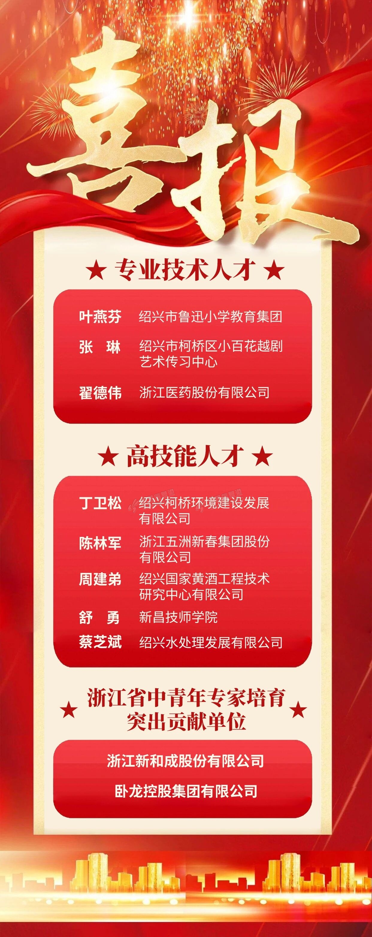 近日,浙江省人民政府发布《关于表彰浙江省有突出贡献中青年专家和浙江省中青年专家培育突出贡献单位的通报》(浙政发〔2026〕4号),我市共有3位专业技术人才、5位高技能人才及2家民营企业获得殊荣,他们分别是: ...