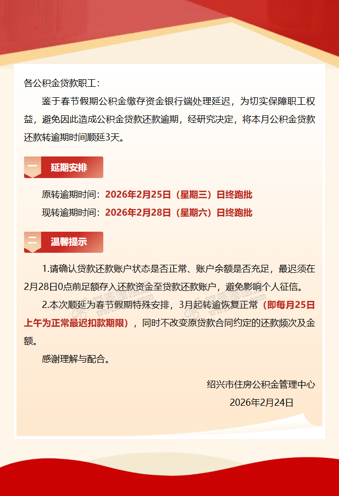 来源:绍兴住房公积金原标题:关于本月公积金贷款延期转逾的通告
